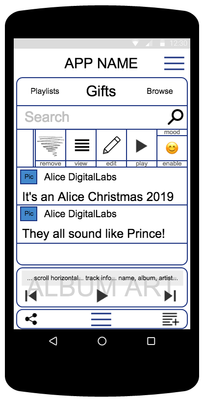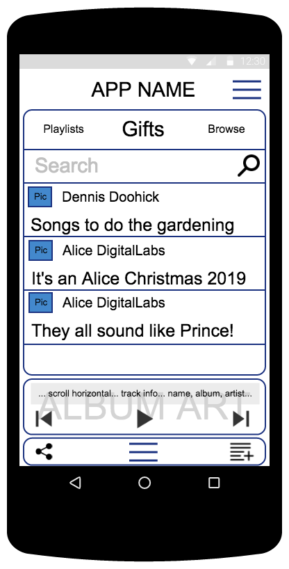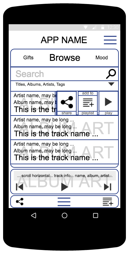 Tabs handling music (Playlists, Gifts, Browse, Mood) generate a playlist, and then transfer it to the Play Area, so the Play Area can keep playing music uninterrupted while another tab is active.